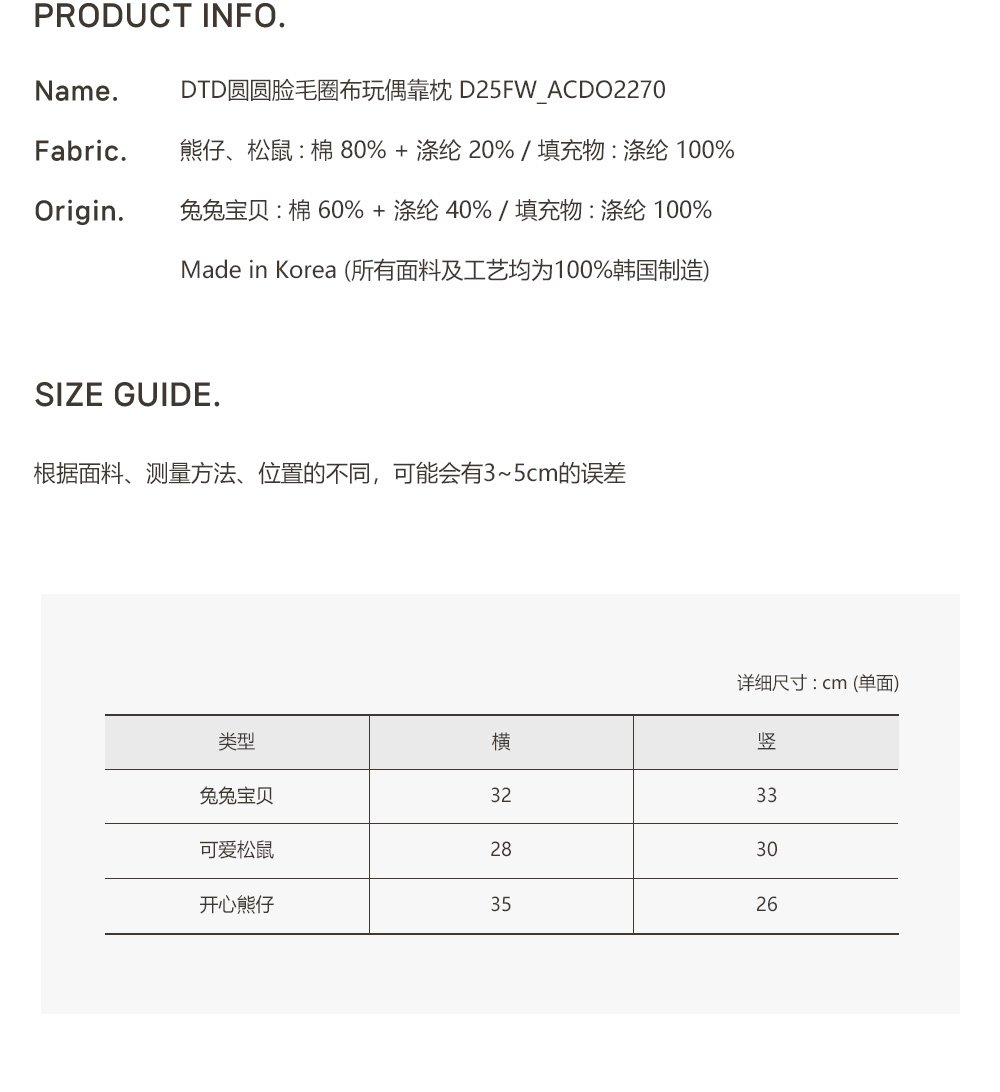 25F/W DTD圓圓臉毛圈布玩偶靠枕