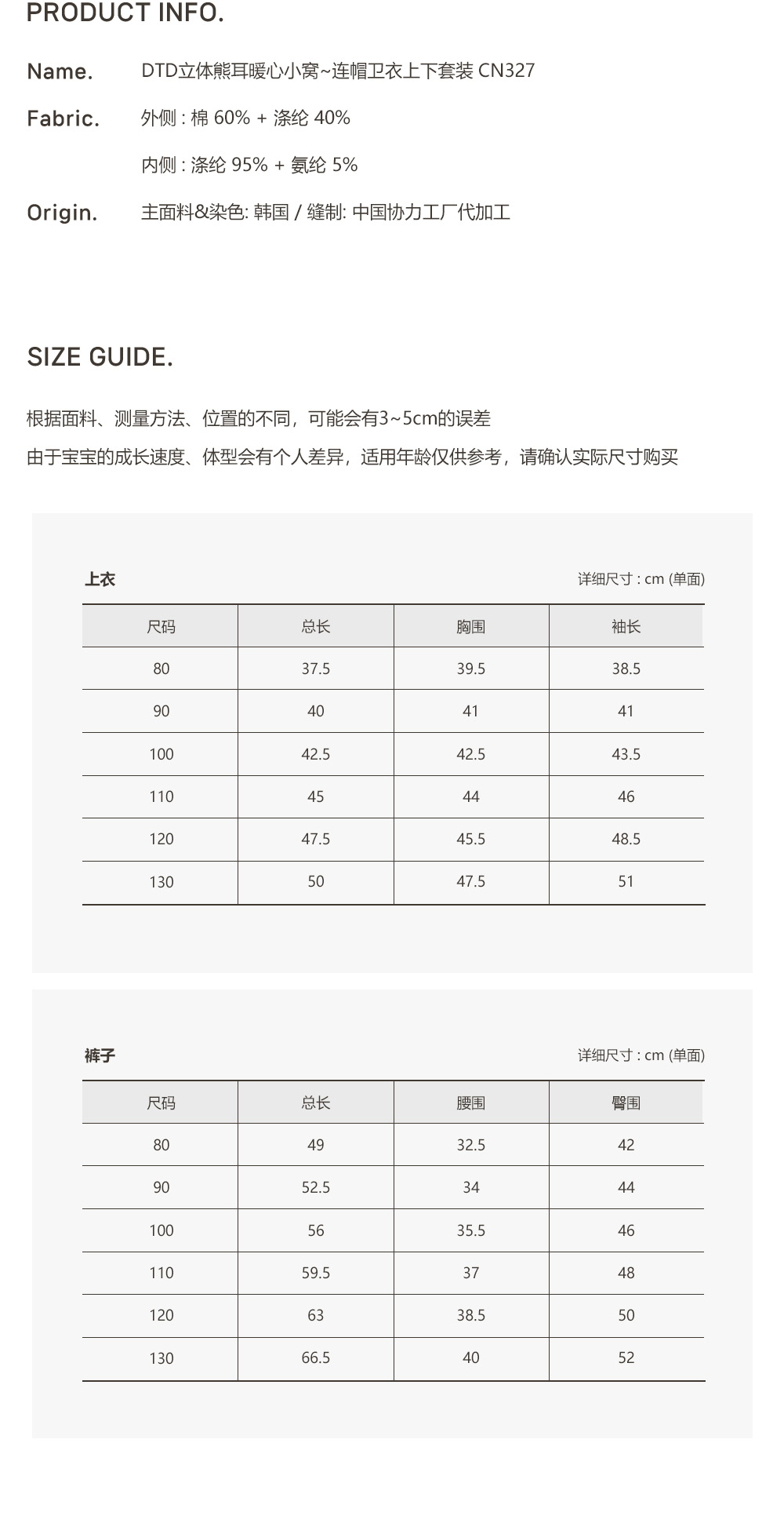 25F/W DTD立體熊耳暖心小窩~連帽衛衣上下套裝