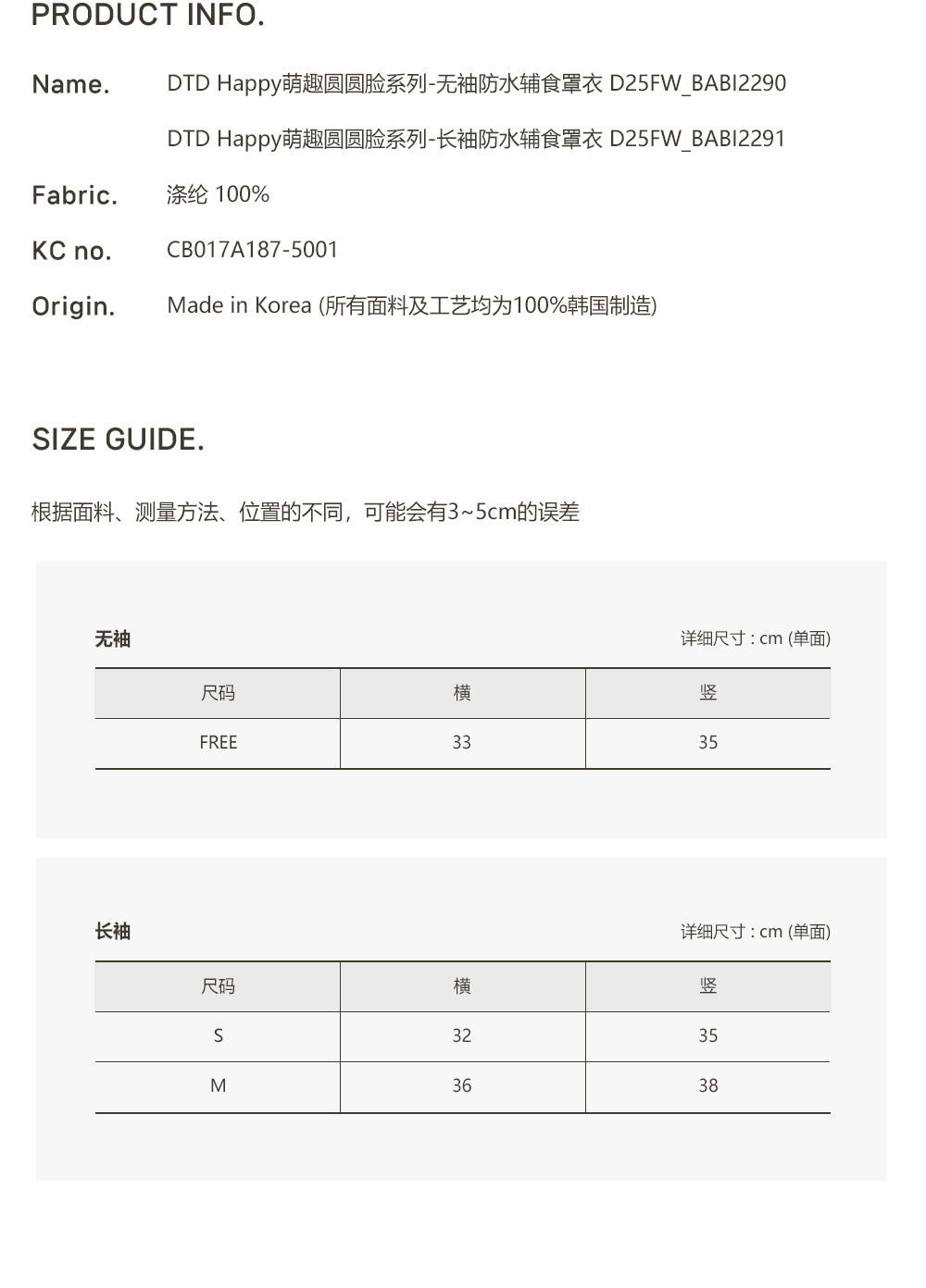 25F/W DTD Happy萌趣圓圓臉系列-防水輔食罩衣(長袖)