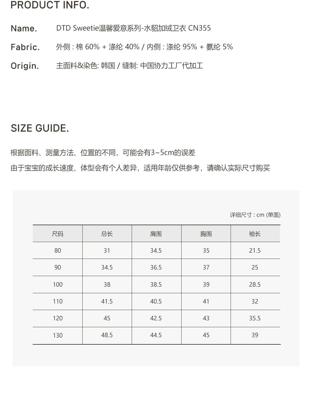 25F/W DTD Sweetie溫馨愛意系列-水貂加絨衛衣 / 衛褲