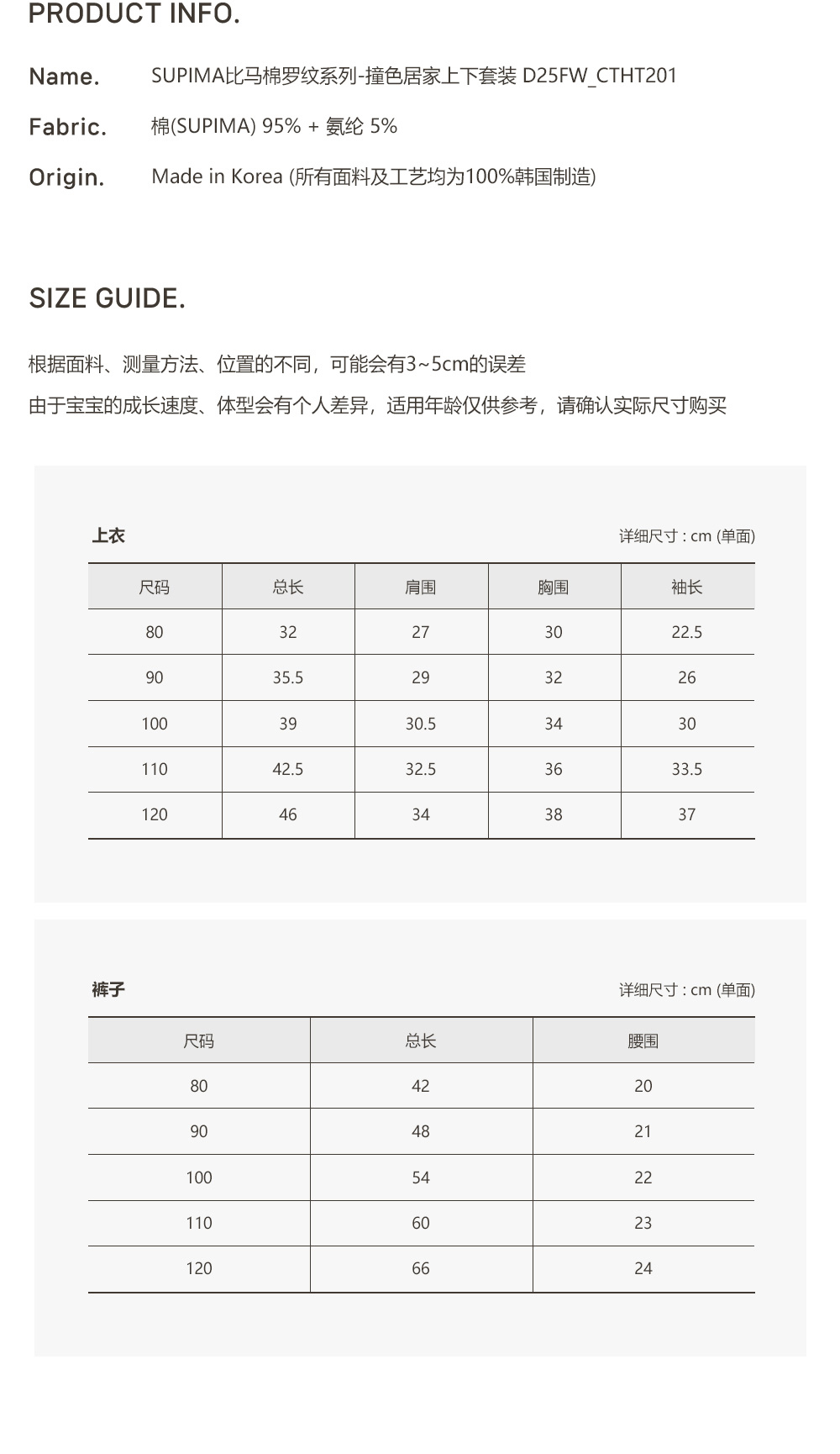 25F/W SUPIMA比馬棉羅紋系列-撞色居家上下套裝 100/110