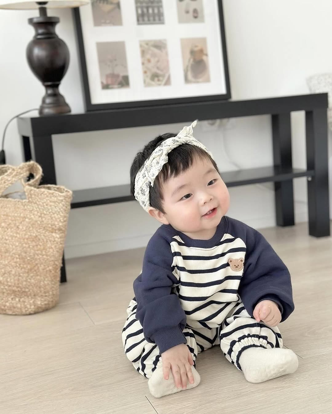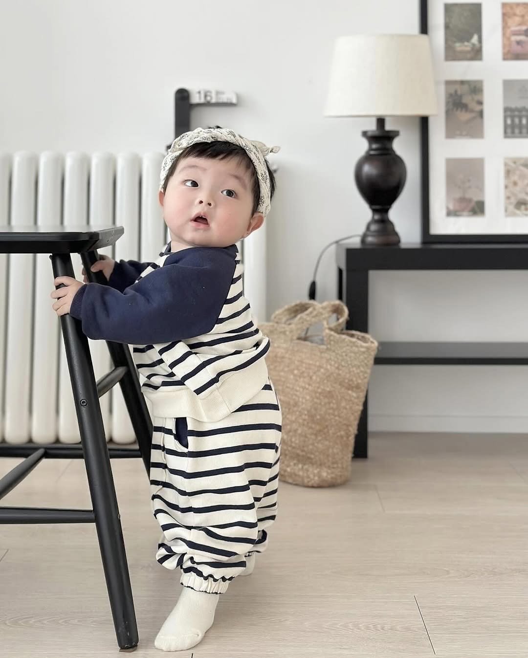 25S/S DTD元氣登園look~條紋落肩上下套裝 100/110