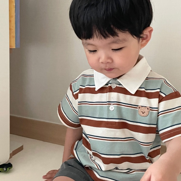 DOTTODOT 25S/S 果凍人物三色夾心條紋翻領T恤
