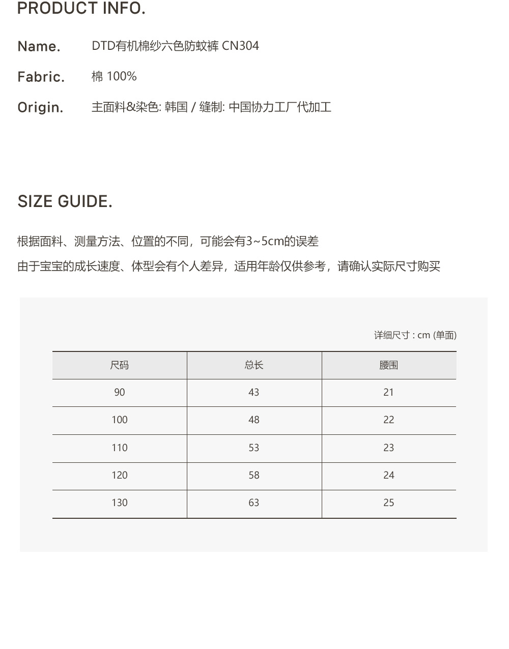 25S/S DTD有機棉紗六色防蚊褲 120/130
